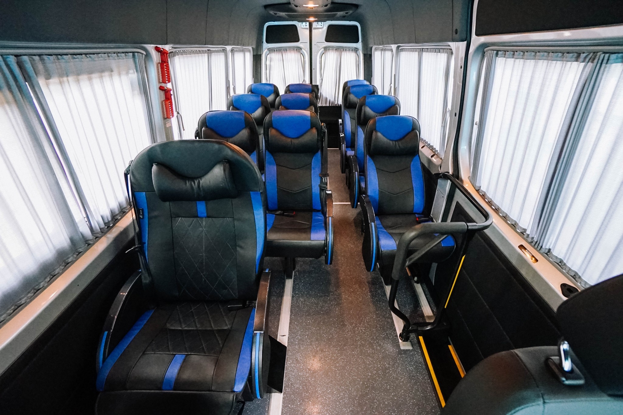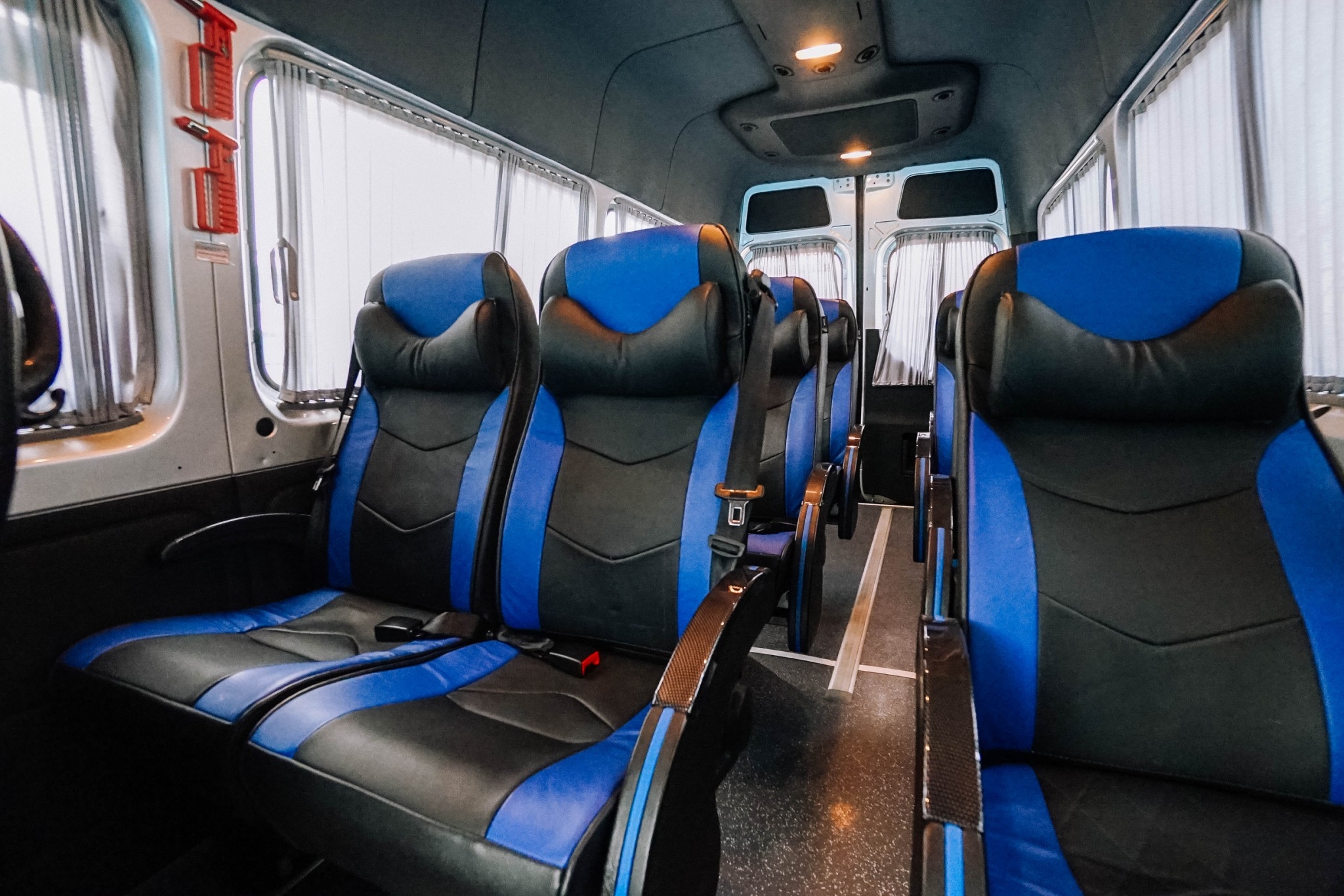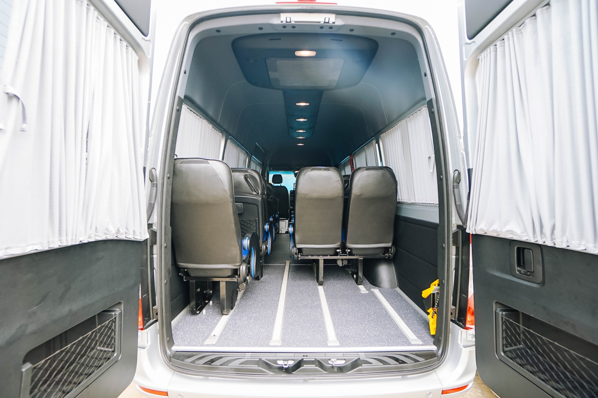 Sprinter รถตู้ขนาดใหญ่จาก Mercedes Benz มีห้องโดยสารขนาดใหญ่ ภายในสูงสามารถยืนได้อย่างสบาย เบาะหนังแท้ รองรับกับสรีระและโอบกอดร่างกายของผู้โดยสารให้ผ่อนคลาย นั่งสบาย ไม่เมื่อยระหว่างการเดินทาง และพื้นที่เก็บสัมภาระขนาดใหญ่ สะดวกสบายพร้อมสำหรับการเดินทางเป็นหมู่คณะ
